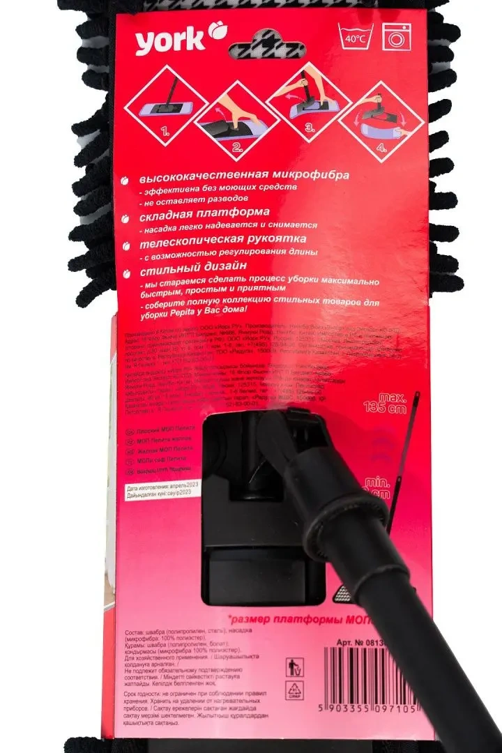 Швабра York Пепита Стайл микрофибра 'лапша', телескопический черенок