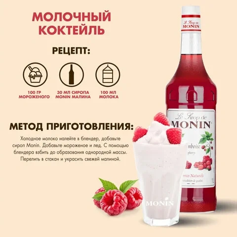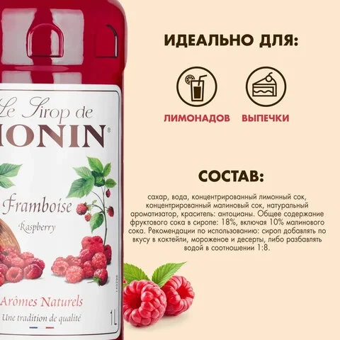 Сироп MONIN 'Малина', 1 л, стеклянная бутылка, SMONN0-000292