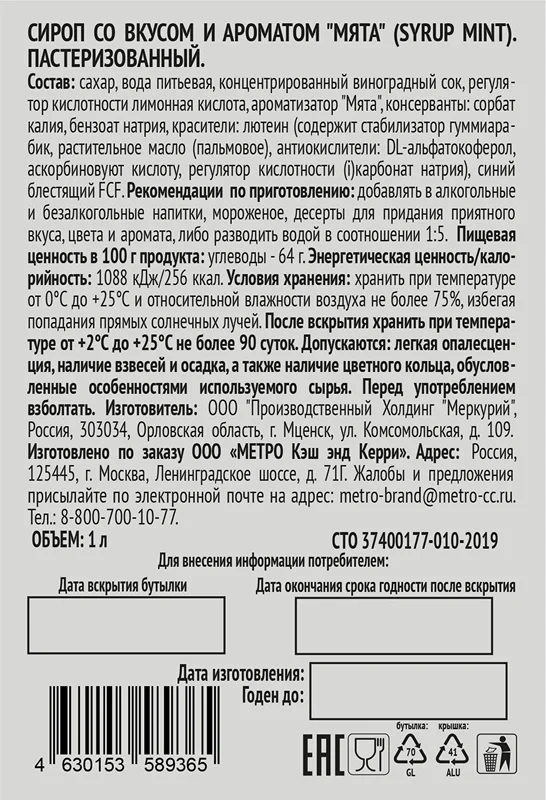 Мятный сироп - это прекрасное дополнение к любимым напиткам и для приготовления Мохито. Идеально сочетается с чаем, газированными напитками, кофе, пуншами, коктейлями, смузи и милкшейками. Также применяется как добавка для мороженого или йогурта. Сироп отличается глубоким зеленым цветом и великолепно сбалансированным, охлаждающим вкусом мяты. Даже небольшое количество этого сиропа придаст напиткам невероятно красивый мятный оттенок. Мы заботимся о качестве продукта и изготавливаем его, тщательно проверяя сырье и каждый этап производства. Придайте своим напиткам особую вкусовую пикантность. Мятный сироп - это отличный подарок себе и близким. Подходит для вегетарианцев и веганов. При использовании сиропа для питья разбавлять водой в пропорции 1:7.