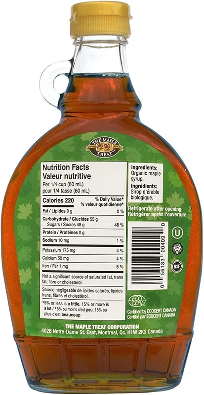 Натуральный продукт из кленовых лесов в Восточной Канаде. Кленовый сироп получают из чистого сырого сока растения. Имеет богатое содержание микроэлементов, таких как железо, магний, марганец, кальций, фосфор, калий, натрий, цинк, а также большое количество всего комплекса витаминов B, прежде всего тиамина. В кленовом сиропе меньше сахара, чем в мёде, и очень низкое содержание фруктозы. Поэтому его рекомендуют всем кто, хочет снизить калорийность своего питания. И его можно употреблять даже диабетикам. Примеры применения: используют вместо сахара в кофе и чай; поливают оладьи, блинчики и мороженное; используют при приготовлении лосося или свинины на гриле; добавляют в молочные коктейли, каши и мюсли; запекают с яблоками в духовке; делают кленовый молочный коктейль.