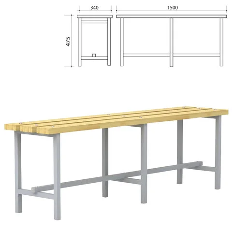 Скамья для раздевалок дерево, каркас металл, на ножках, 1500х340х475мм