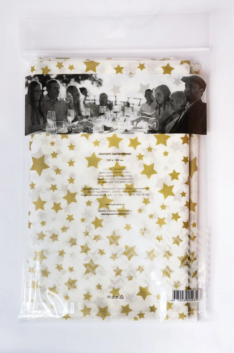 Скатерть бумажная Pa-Pino Звездочки, 120 x 180 см — незаменимое решение для пикников и фуршетов. Одноразовое изделие выполнено из экологичной бумаги и не требует особых условий для утилизации. По тактильным ощущениям скатерть напоминает настоящую текстильную. За счет не слишком броского цвета такое изделие органично дополнит собой любую сервировку: от детского дня рождения до торжественного выездного фуршета. Скатерть подойдет для большинства стандартных столов. Она поможет эстетично оформить любое мероприятие и создаст праздничное настроение. Срок годности: не ограничен.