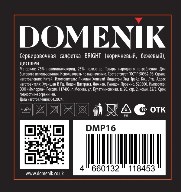 Салфетка сервировочная Domenik Bright коричневая-бежевая, 45 x 30см