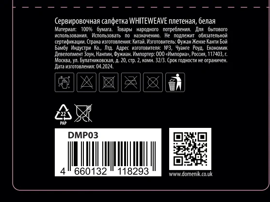 Салфетка сервировочная Domenik White Weave плетеная белая