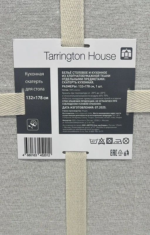 Tarrington House Скатерть белая 135г, 132 x 178см