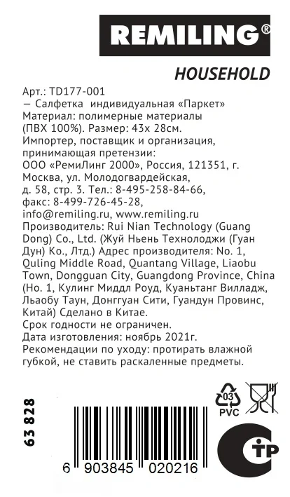 Салфетка Remiling Паркет прозрачная пвх, 28 x 43см