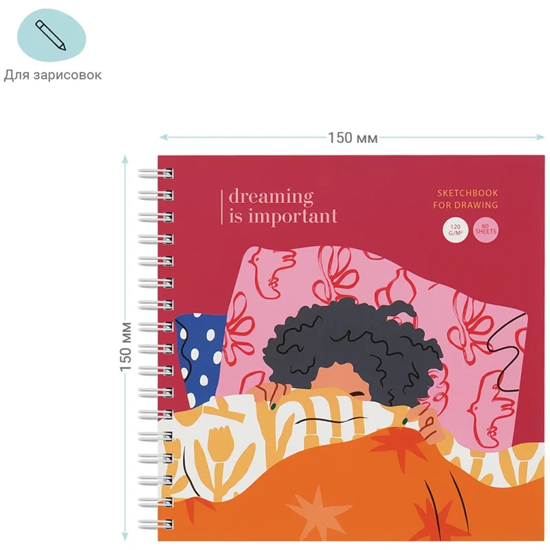 Скетчбук 60л., 150*150 MESHU 'Pleasure', на гребне, 120г/м2, soft-touch