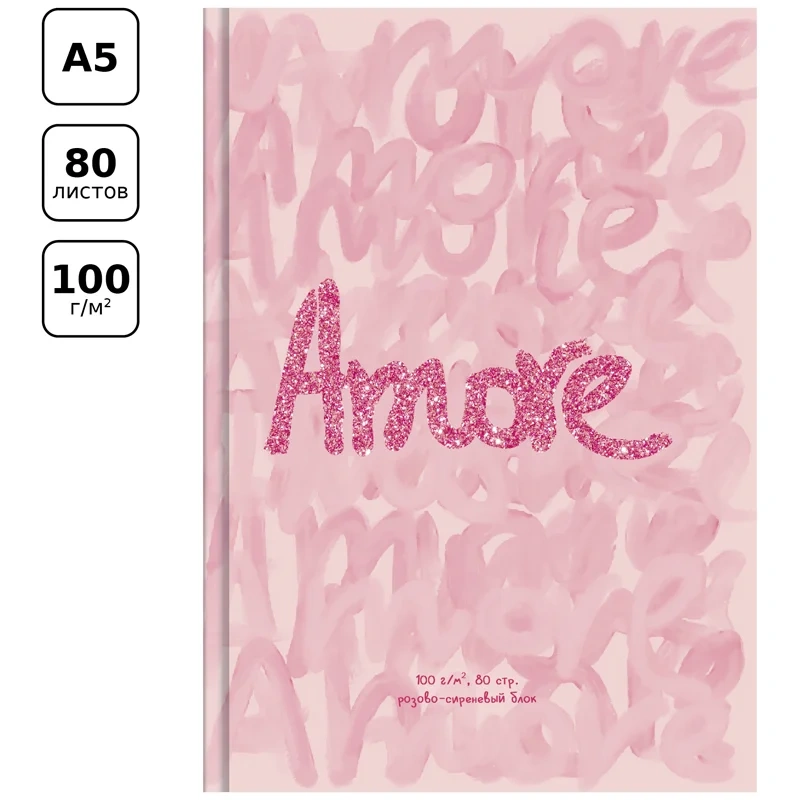 Скетчбук BG серии Amore удобного формата А5 и размера 151*211 мм с нежным розовым дизайном является прекрасным помощником в создании эскизов, быстрых набросков, а также записей. Твёрдая обложка (7БЦ) выполнена из картона с матовой ламинацией и блёстками. Внутренний блок состоит из 80 нелинованных белых листов с градиентом офсетной бумаги плотностью 100 г/кв. м. Сшитый блок делает использование тетради для эскизов комфортным и надёжным. Все рисунки и записи будут храниться в одном месте.