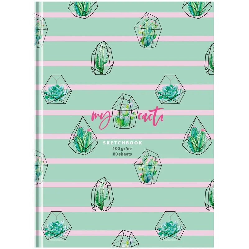Скетчбук 80л., А5 7БЦ BG 'My cacti', матовая ламинация, 100г/м2