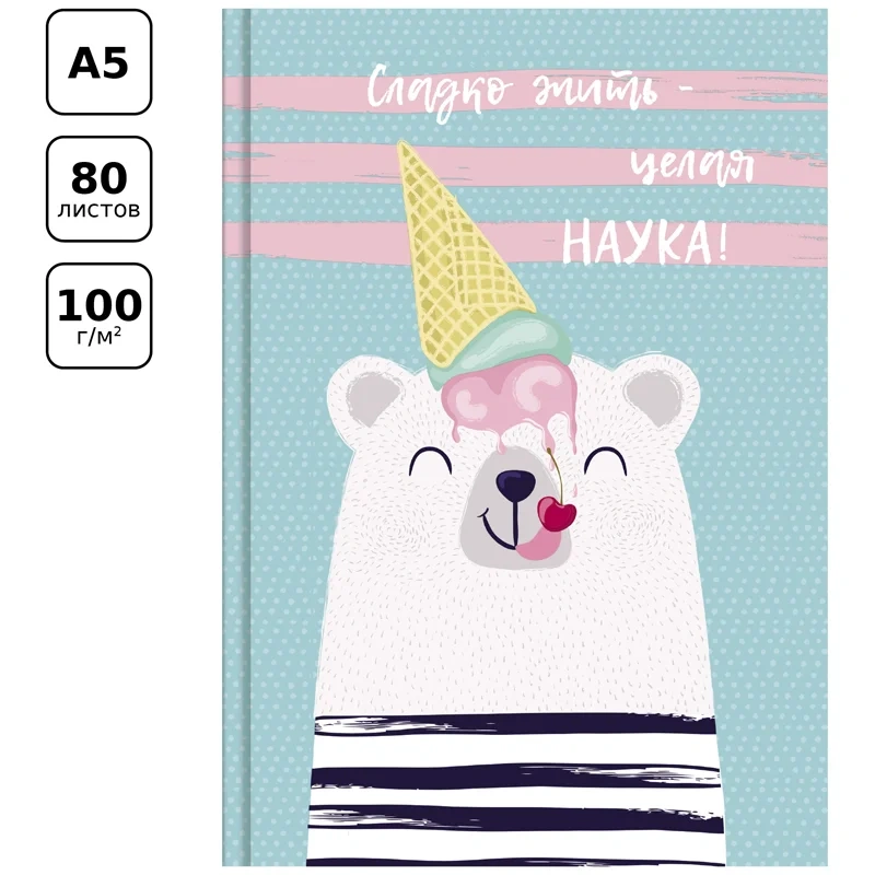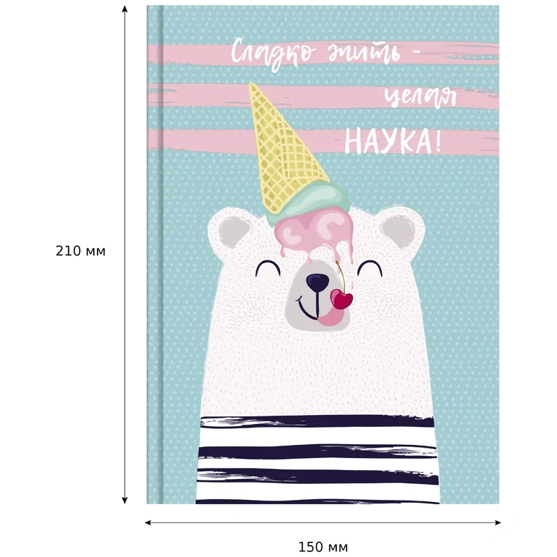 Скетчбук BG серии «Сладкая жизнь» удобного формата А5 и размера 151*211 мм со стильным изображением белого мишки является прекрасным помощником в создании эскизов, быстрых набросков, а также записей. Твёрдая обложка (7БЦ) выполнена из картона с матовой ламинацией и блёстками. Внутренний блок состоит из 80 нелинованных белых листов с градиентом офсетной бумаги плотностью 100 г/кв. м. Сшитый блок делает использование тетради для эскизов комфортным и надёжным. Все рисунки и записи будут храниться в одном месте.