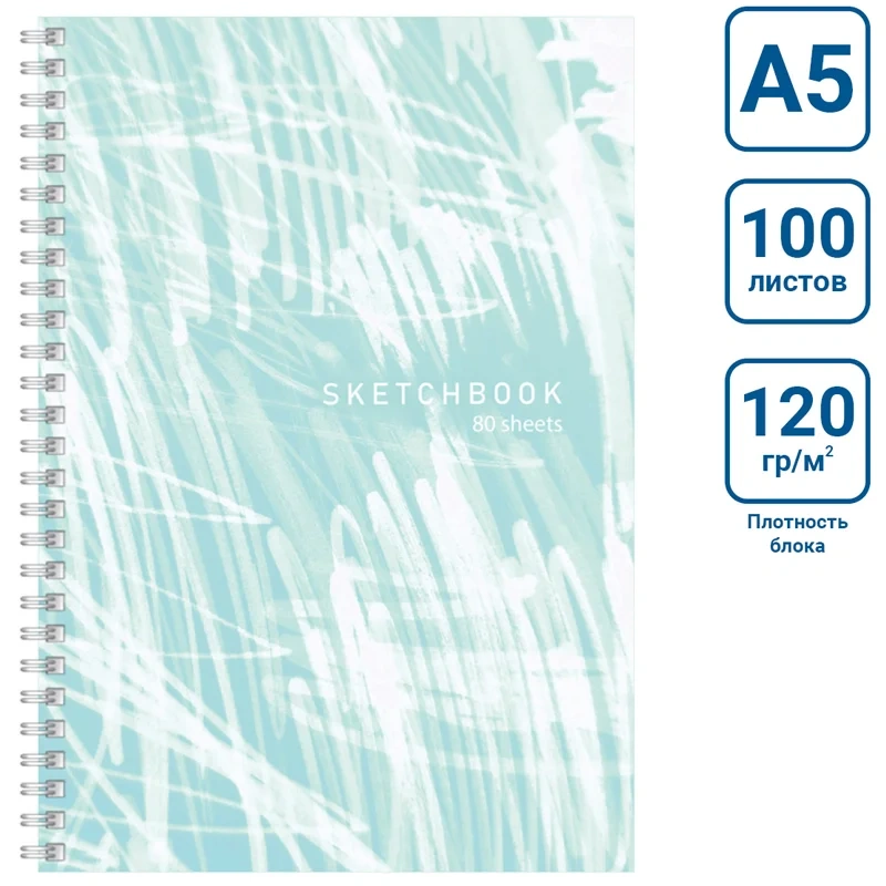 Скетчбук 80л., А5 на гребне BG 'Штрихи', матовая ламинация, 120г/м2