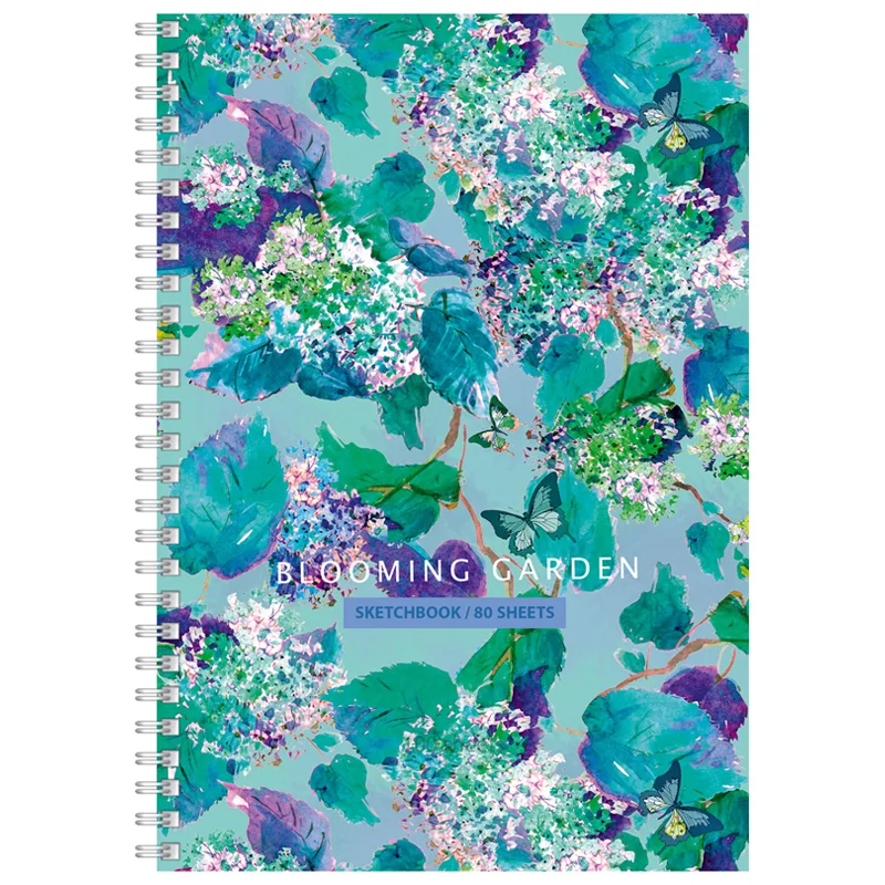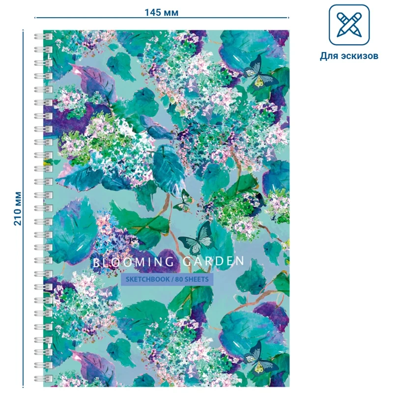 Скетчбук 80л., А5 на гребне BG 'Цветение', матовая ламинация, выб. лак, 120г/м2