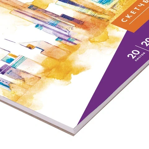 Изделие имеет размер 280х280 мм и содержит 20 белоснежных листов плотностью 200 г/м2 со среднезернистой текстурой. Листы удобно скреплены спиралью, что позволяет переворачивать их на 180 градусов. Привлекательная обложка выполнена из импортного мелованного картона. Жесткая задняя подложка жесткая позволяет делать зарисовки и наброски 'на весу'. Бумага обеспечивает равномерную акварельную заливку и контролируемый край, впитывает воду, но при этом слабо деформируется, стойка к вымыванию, не съедает цвет, оставляя яркие цвета неизменными, быстро сохнет.