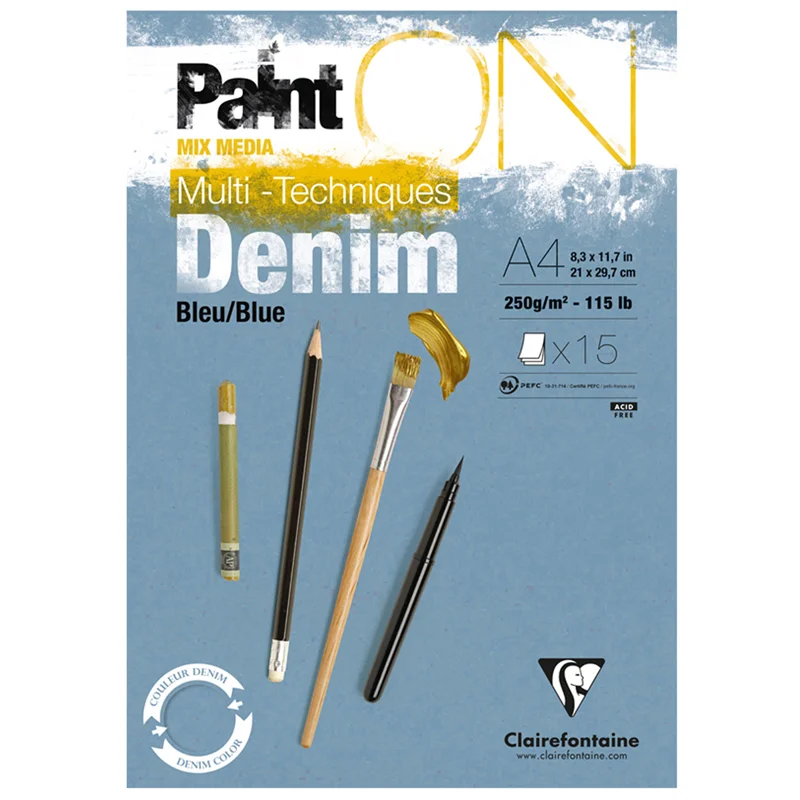 Скетчбук - альбом для смешанных техник 15л., А4 Clairefontaine 'Paint ON Denim Blue', на склейке, 25