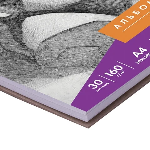 Привлекательная обложка выполнена из импортного мелованного картона. В блокноте 30 белоснежных листов плотностью 160 г/м2, т.е. 30 возможностей воплотить свою задумку! Листы удобно скреплены спиралью - это позволяет переворачивать их на 180 градусов. Задняя подложка жесткая, что позволит делать зарисовки и наброски 'на весу'. Удобный формат размером 205х290 мм.