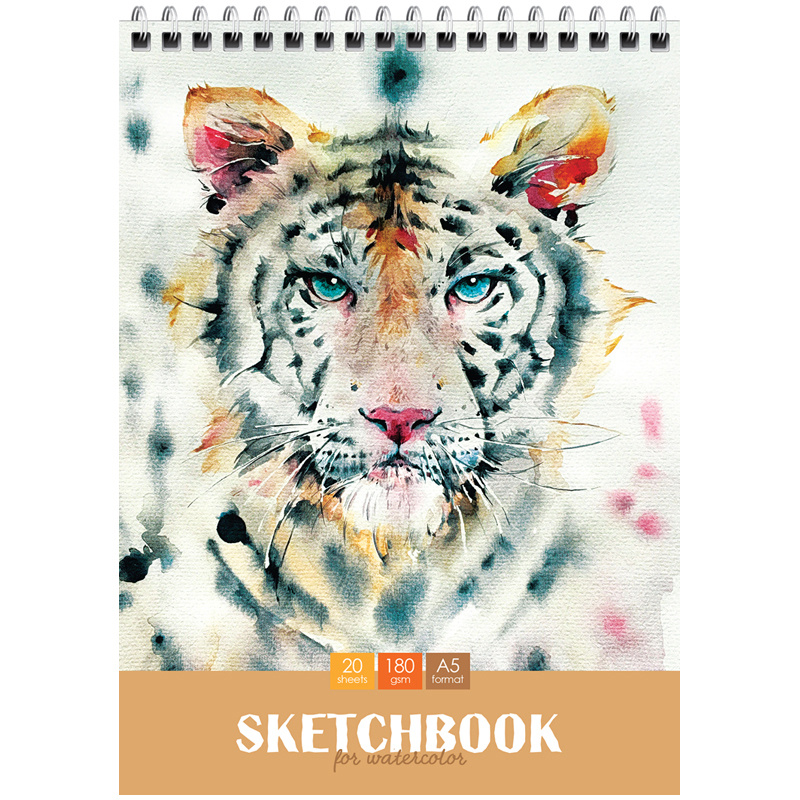 Скетчбук-блокнот для акварели 20л., А5 ArtSpace 'Wild cats', на гребне, 180г/м2