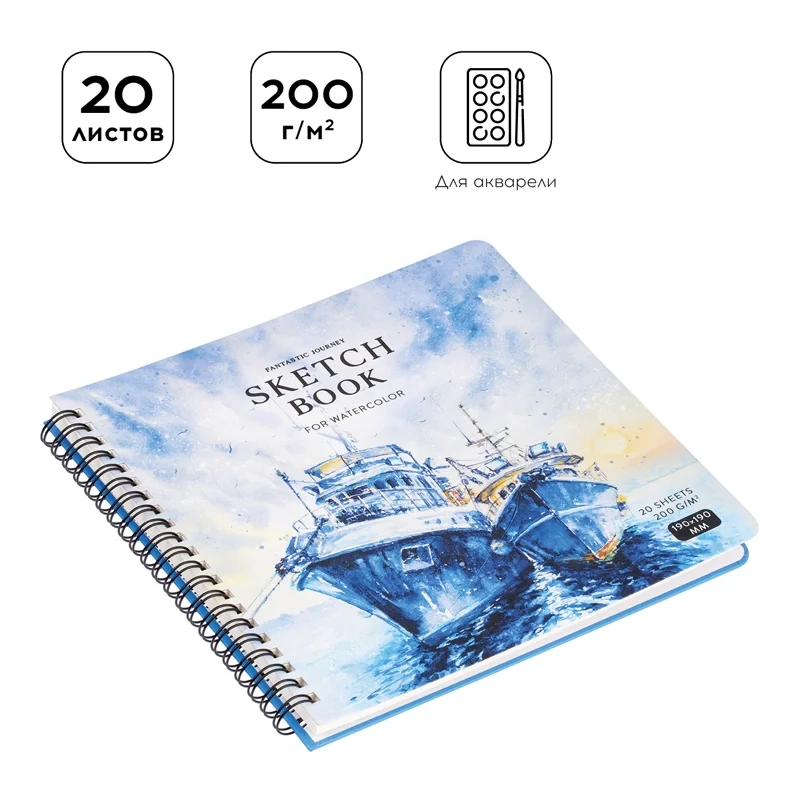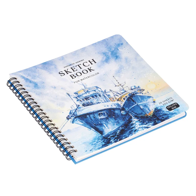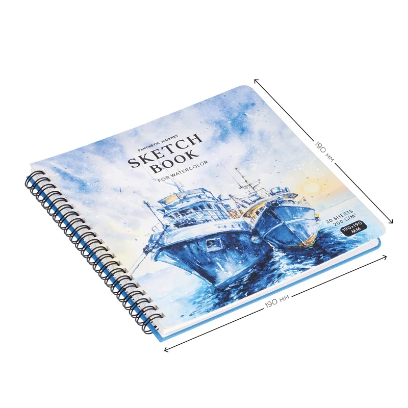Скетчбук для акварели Greenwich Line Navy ships состоит из 20 листов плотностью 200 г/м2, тип скрепления – гребень. Удобный размер 190*190 мм позволяет взять его с собой и делать зарисовки на улице и в путешествии. Квадратный формат является оптимальным для творчества, так как симметричные композиции на нем смотрятся гораздо интереснее и гармоничнее. Для лёгкого отрыва листа и предотвращения его повреждения предусмотрена перфорация. Скрепление гребень дает возможность раскрывать скетчбук на 360 градусов.