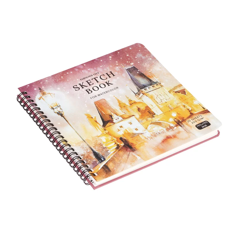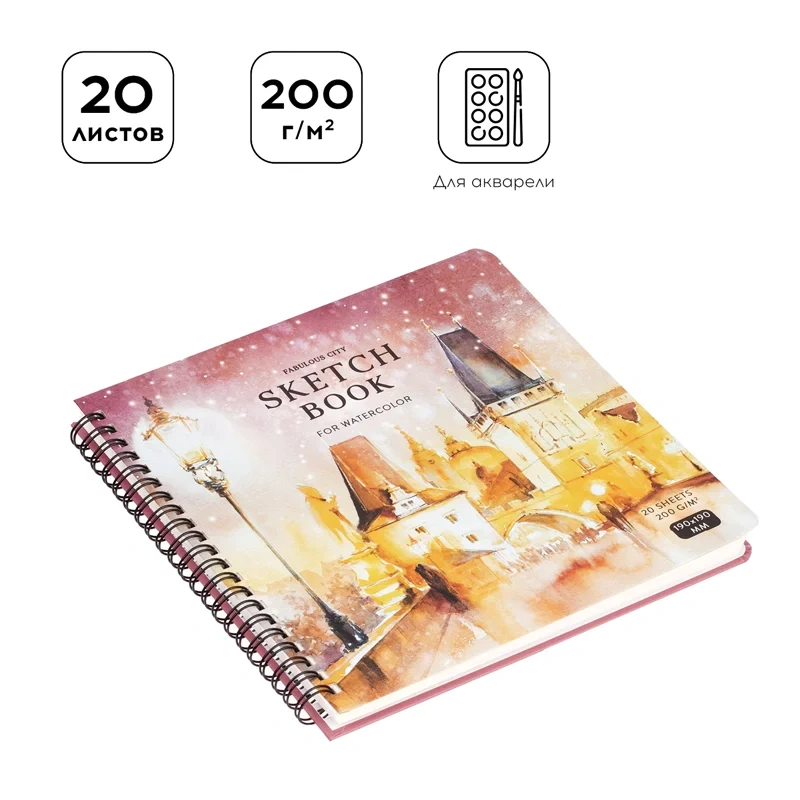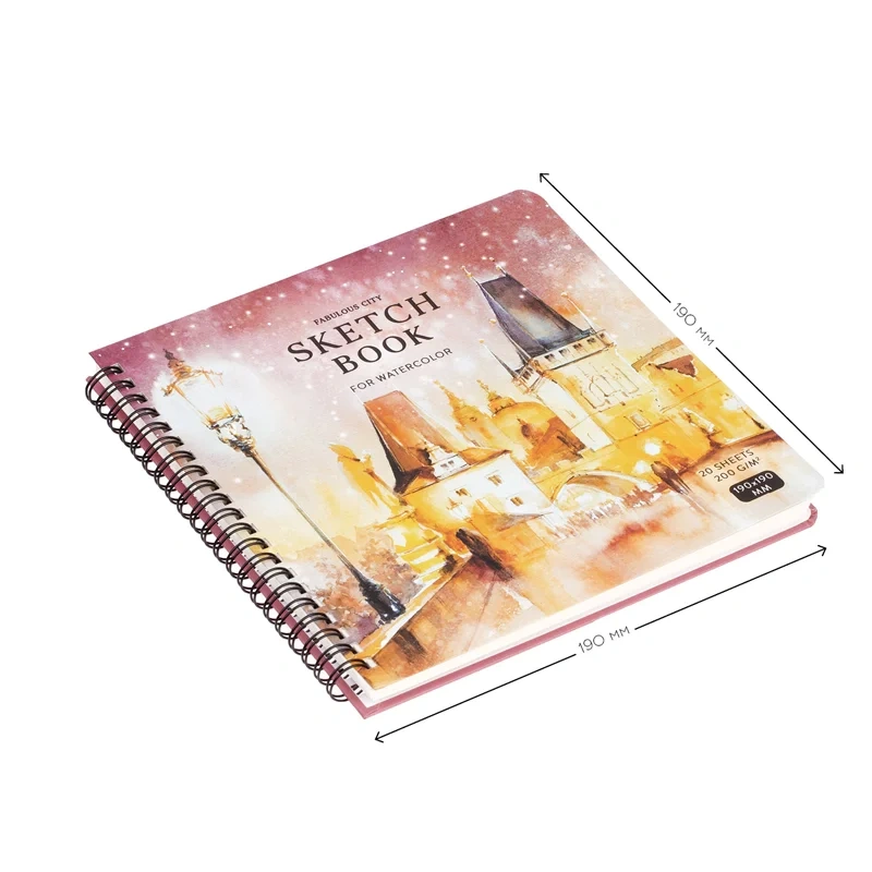 Скетчбук для акварели Greenwich Line Winter town состоит из 20 листов плотностью 200 г/м2, тип скрепления – гребень. Удобный размер 190*190 мм позволяет взять его с собой и делать зарисовки на улице и в путешествии. Квадратный формат является оптимальным для творчества, так как симметричные композиции на нем смотрятся гораздо интереснее и гармоничнее. Для лёгкого отрыва листа и предотвращения его повреждения предусмотрена перфорация. Скрепление гребень дает возможность раскрывать скетчбук на 360 градусов.