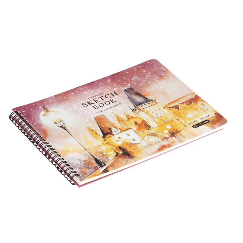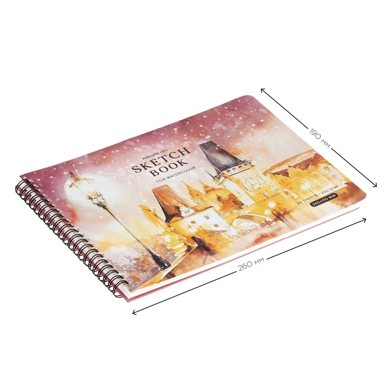 Скетчбук для акварели Greenwich Line Winter town состоит из 20 листов плотностью 200 г/м2, тип скрепления – гребень. Удобный размер 260*190 мм позволяет взять его с собой и делать зарисовки на улице и в путешествии. Для лёгкого отрыва листа и предотвращения его повреждения предусмотрена перфорация. Скрепление гребень дает возможность раскрывать скетчбук на 360 градусов.
