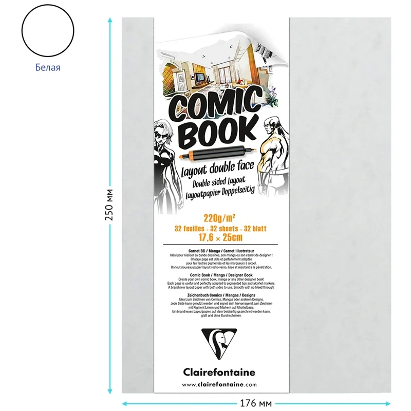 Скетчбук для маркеров 32л., 176*250 Clairefontaine 'Comic book', на склейке, 220г/м2