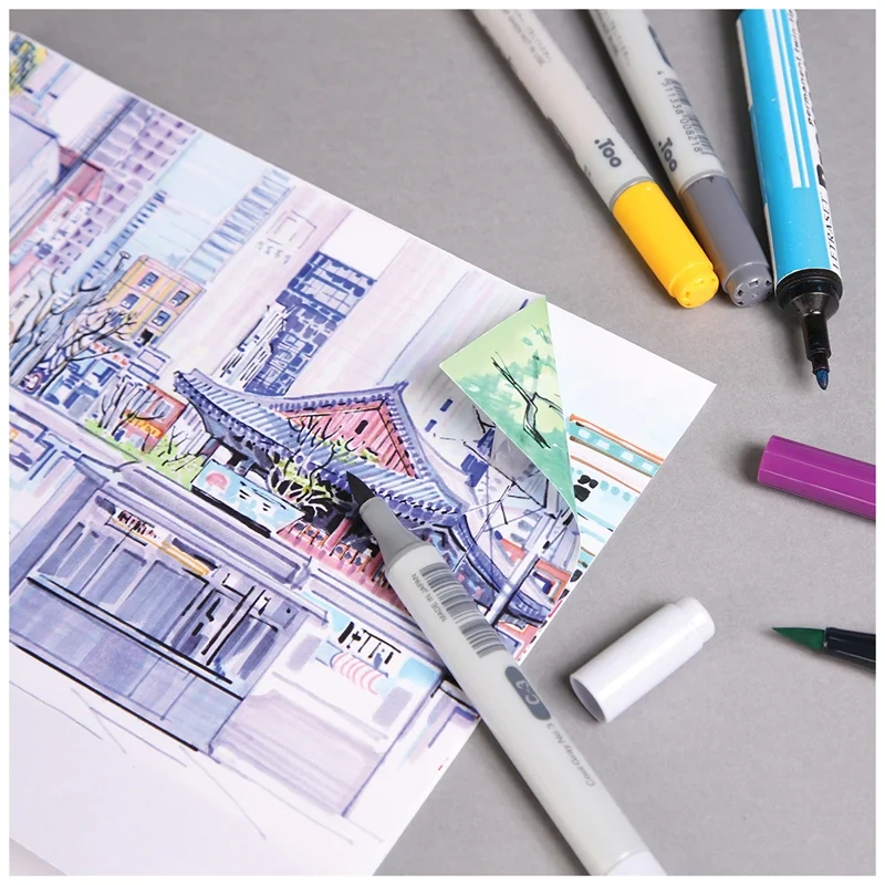 Скетчбук для маркеров Clairefontaine серии «Comic book» А5 размером 176*250 мм состоит из 32 листов гладкой бумаги плотностью 220 г/м2, тип скрепления – склейка. Бумага не просвечивает, каждый лист можно использовать с двух сторон. Благодаря таким характеристикам можно делать штриховку в зарисовке и накладывать слои. Обложка имеет светло-серую карточку, которую можно настроить под свой вкус – располагай её слева, справа или посередине. Идеально подходит для зарисовок маркерами, тушью и карандашами.