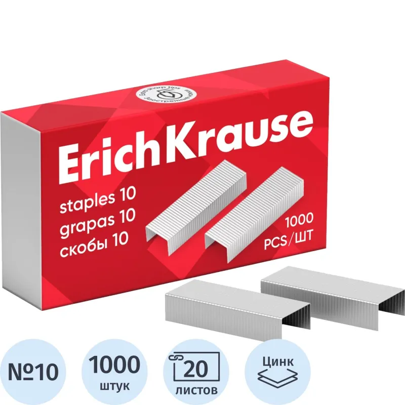 Скобы для степлера 10 ErichKrause, 1000шт/уп, оцинкованные, 1188