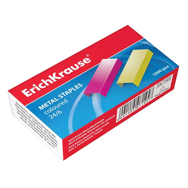 Скобы для степлера Erich Krause №24/6, цветные, 1000шт, 7145