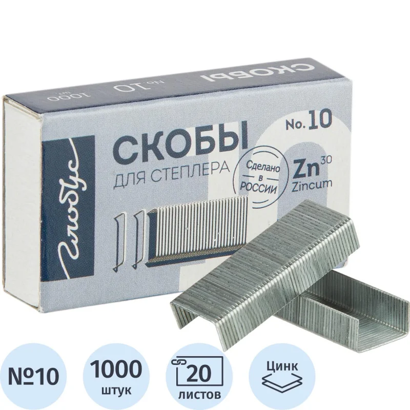 Скобы для степлера Глобус С10-1000 №10, 1000шт/уп, оцинкованные