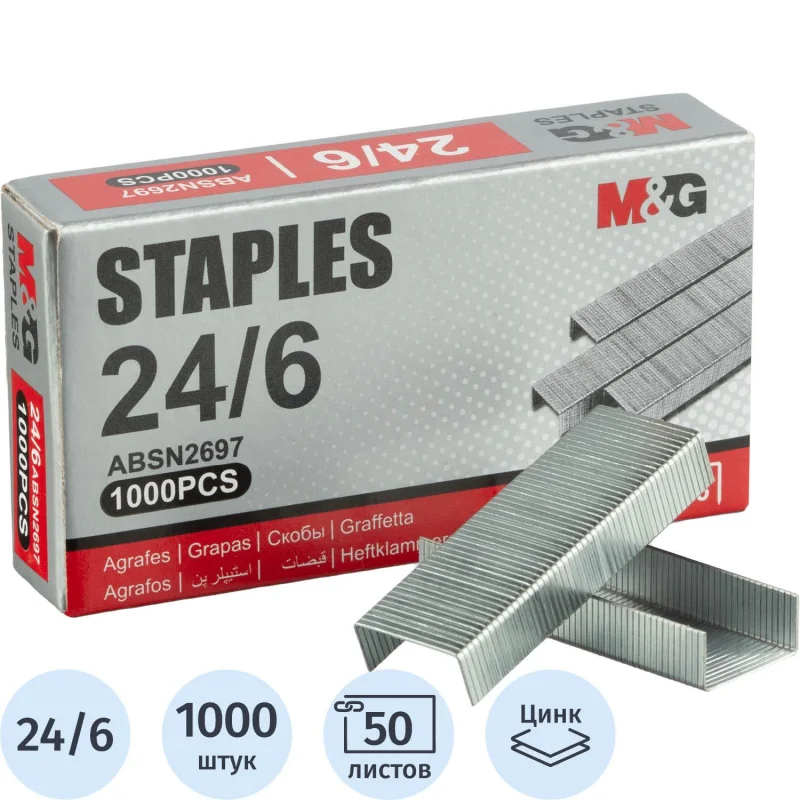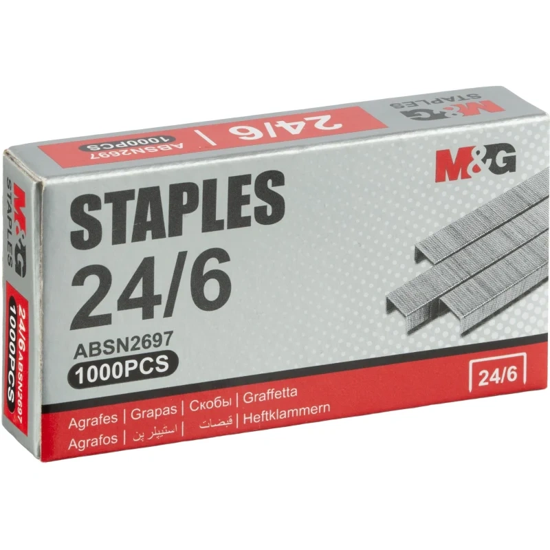 Скобы для степлера M&g №24/6, 1000шт/уп, никелевое покрытие