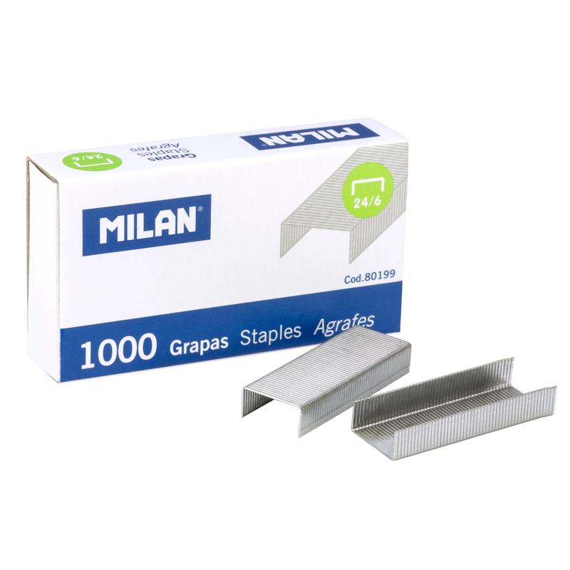 Скобы для степлера № 24/6 Milan предназначены для степлеров со сшивающей способностью до 30 листов. Скобы выполнены из металла с никелевым покрытием. 1000 скоб в картонной пачке. В промежуточной упаковке — 10 пачек по 1000 скоб.