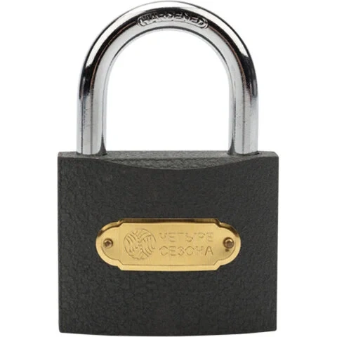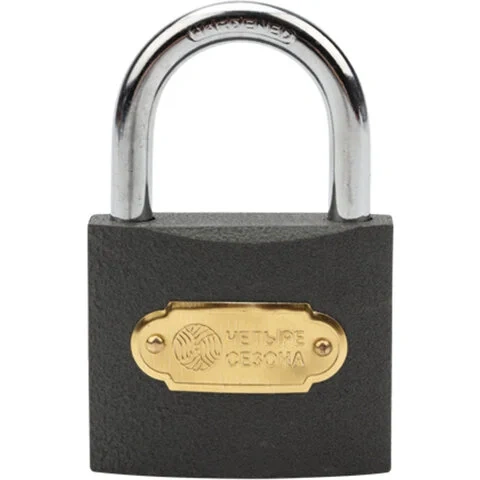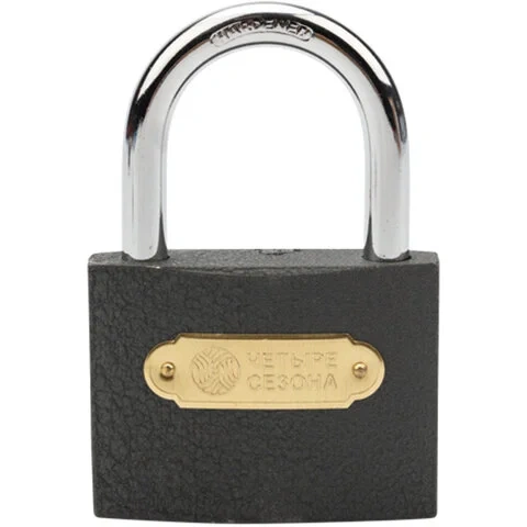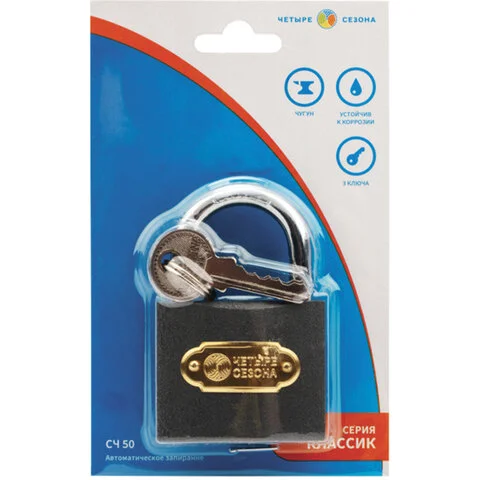 Замок навесной, ширина 50 мм, чугун, дужка d-7,4 мм, английский, 3 ключа, ЧЕТЫРЕ СЕЗОНА, в блистере,