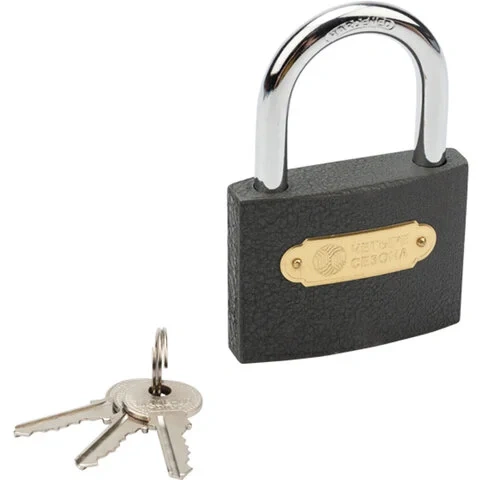 Замок навесной, ширина 60 мм, чугун, дужка d-9 мм, английский, 3 ключа, СИБРТЕХ, ЗН2-М1, 91611