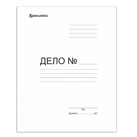Подходит для документов формата А4 и меньше. Изготовлен из белого немелованного картона плотностью 280 г/м2. Оснащен металлическим механизмом сшивания. Вмещает до 200 листов стандартной плотности. Имеет надпись 'Дело №' на обложке. Поставляется в гофрокоробе.
