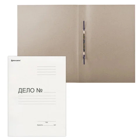 Подходит для документов формата А4 и меньше. Изготовлен из белого немелованного картона. Оснащен металлическим механизмом сшивания. Вмещает до 200 листов стандартной плотности. Имеет надпись 'Дело №' на обложке. Поставляется в гофрокоробе.