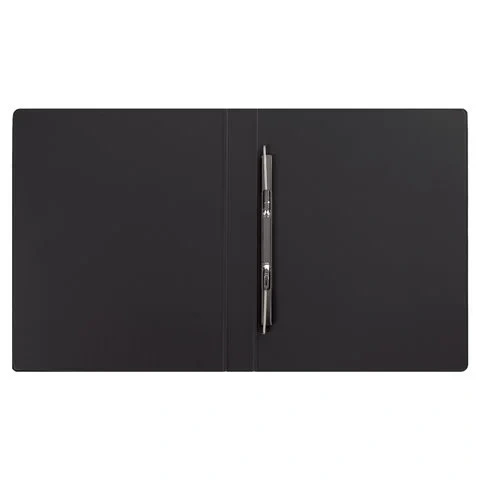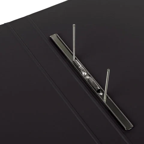 Изготовлена из высококачественного картона с ПВХ покрытием черного цвета. Обеспечивает хранение до 290 листов формата А4. Металлический скоросшиватель с пружинным механизмом обеспечит надежную фиксацию документов. Для идентификации папки имеется сменный бумажный корешок.