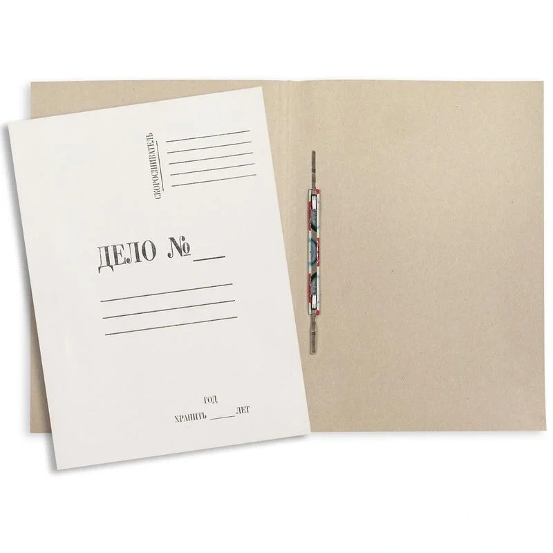 Папка-скоросшиватель Дело формата А4 изготовлена из белого мелованного картона (плотность 400 г/кв.м). Оснащена металлическим механизмом сшивания, скоросшиватель крепится с внешней стороны. Длина усиков составляет 45-50 мм. Ширина корешка данного скоросшивателя составляет от 20 до 25 мм. Размер изделия — 220×20×310 мм. Вместимость — до 200 листов стандартной плотности. Папка-скоросшиватель поставляется по 200 штук в упаковке.