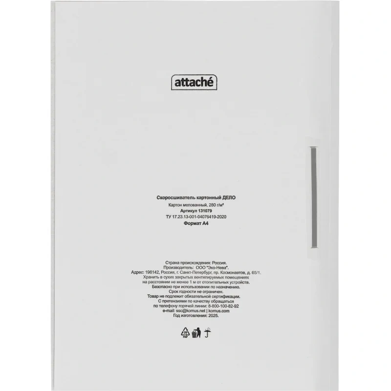 Скоросшиватель картонный Attache Дело белый, А4, 280 г/м2, 20 шт/уп