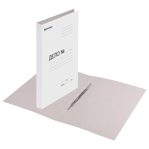 Подходит для документов формата А4 и меньше. Изготовлен из белого мелованного картона плотностью 280 г/м2. Оснащен металлическим механизмом сшивания. Вмещает до 200 листов стандартной плотности. Имеет надпись 'Дело №' на обложке. Поставляется в гофрокоробе.