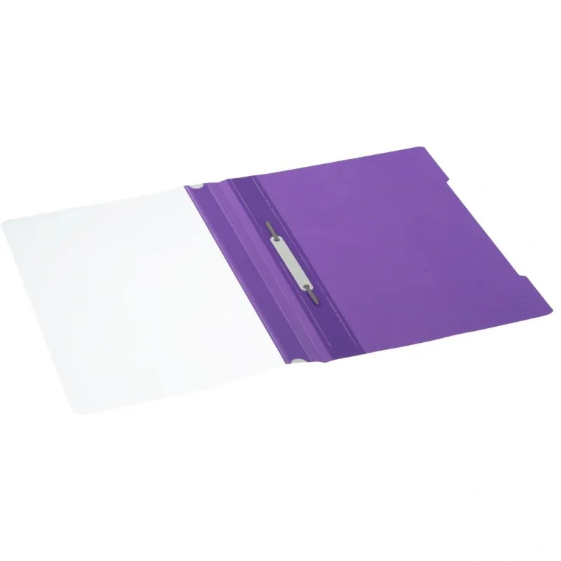 Скоросшиватель используется для хранения различного рода документации, для ведения документооборота, систематизации договоров, других важных бумаг. Форма А4. Папка изготовлена из мягкого пластика с гладкой фактурой. Плотность верхнего листа 100 мкм, плотность нижнего листа папки 120 мкм. С прозрачной верхней обложкой. Пластиковый корешок с белой полосой для размещения информации. Вместимость — 100 листов стандартной плотности. Цвет — фиолетовый. 10 штук в упаковке.
