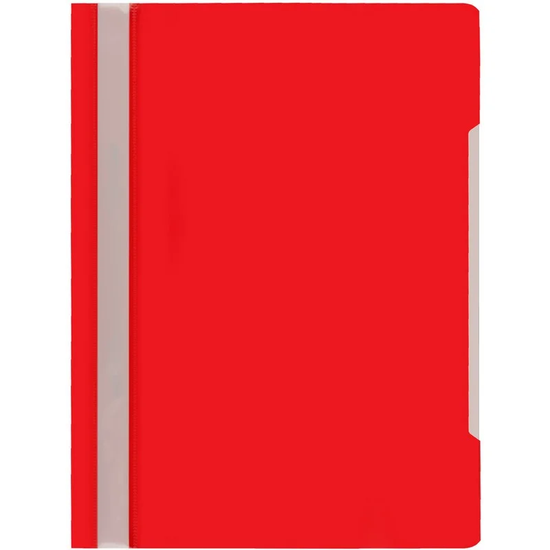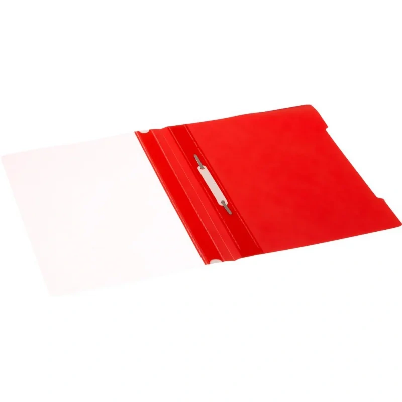 Скоросшиватель используется для хранения различного рода документации, для ведения документооборота, систематизации договоров, других важных бумаг. Форма А4. Папка изготовлена из мягкого пластика с гладкой фактурой. Плотность верхнего листа 100 мкм, плотность нижнего листа папки 120 мкм. С прозрачной верхней обложкой. Пластиковый корешок с белой полосой для размещения информации. Вместимость — 100 листов стандартной плотности. Цвет — красный. 10 штук в упаковке.