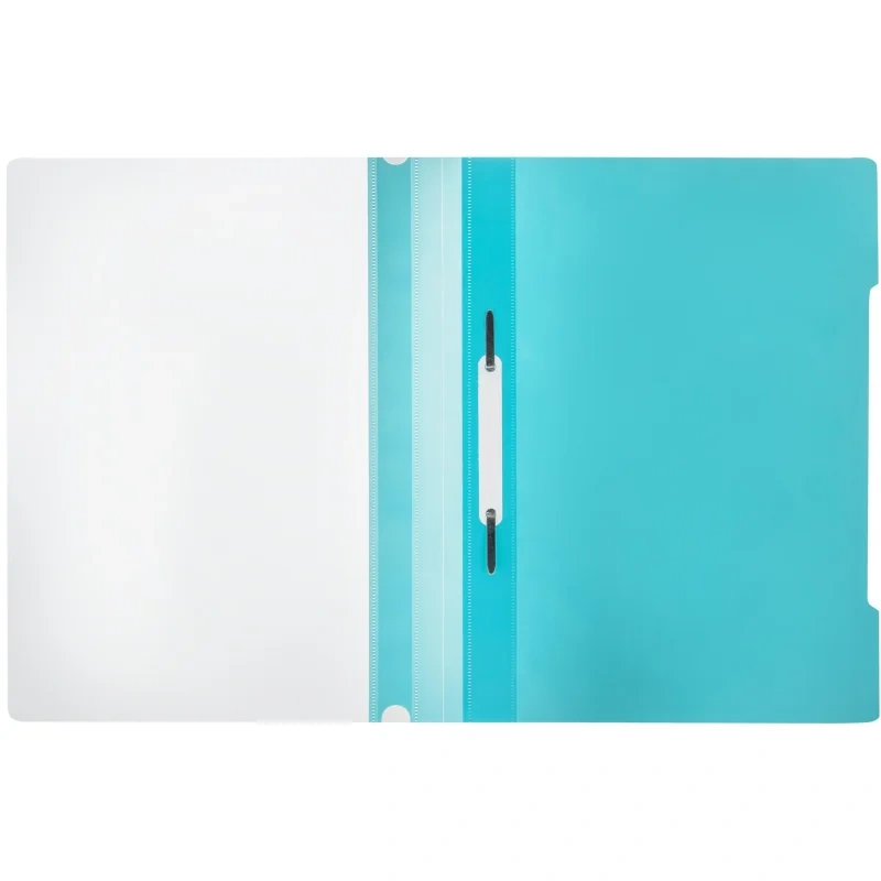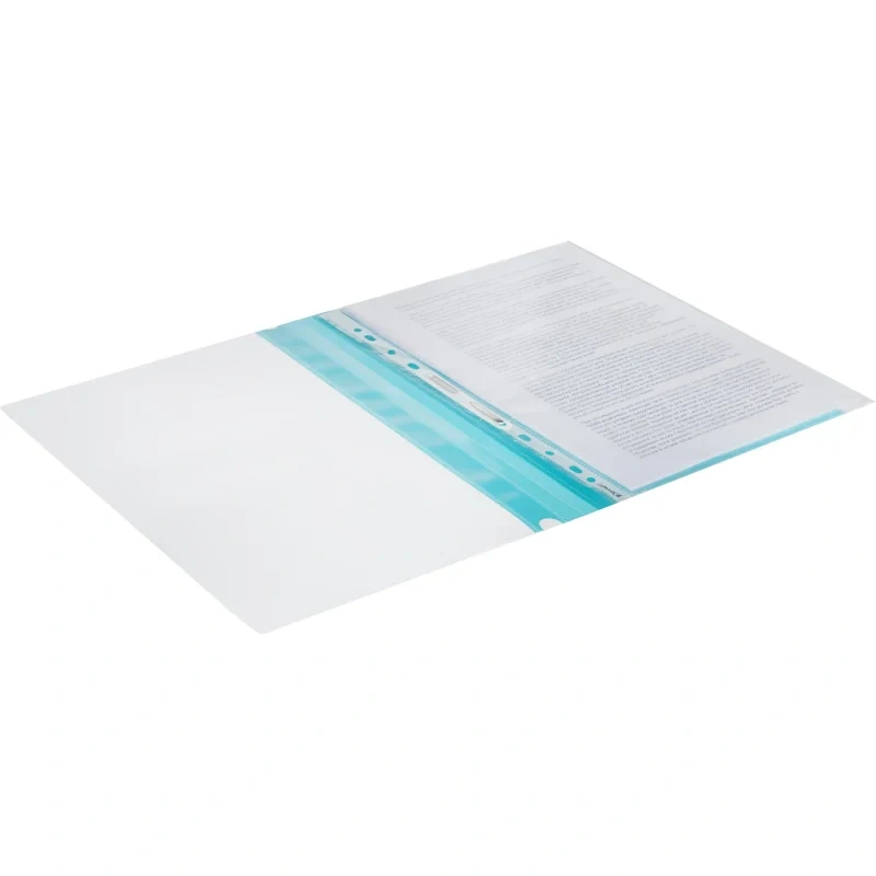 Скоросшиватель Attache используется для хранения различного рода документации, для ведения документооборота, систематизации договоров, других важных бумаг. Формат А4. Папка изготовлена из гладкого пластика. Толщина верхнего прозрачного листа — 150 мкм, нижнего цветного листа — 180 мкм. На лицевой стороне находится карман с белым бумажной полосой для указания содержания, вместимость — 100 листов стандартной плотности. Цвет — бирюзовый.