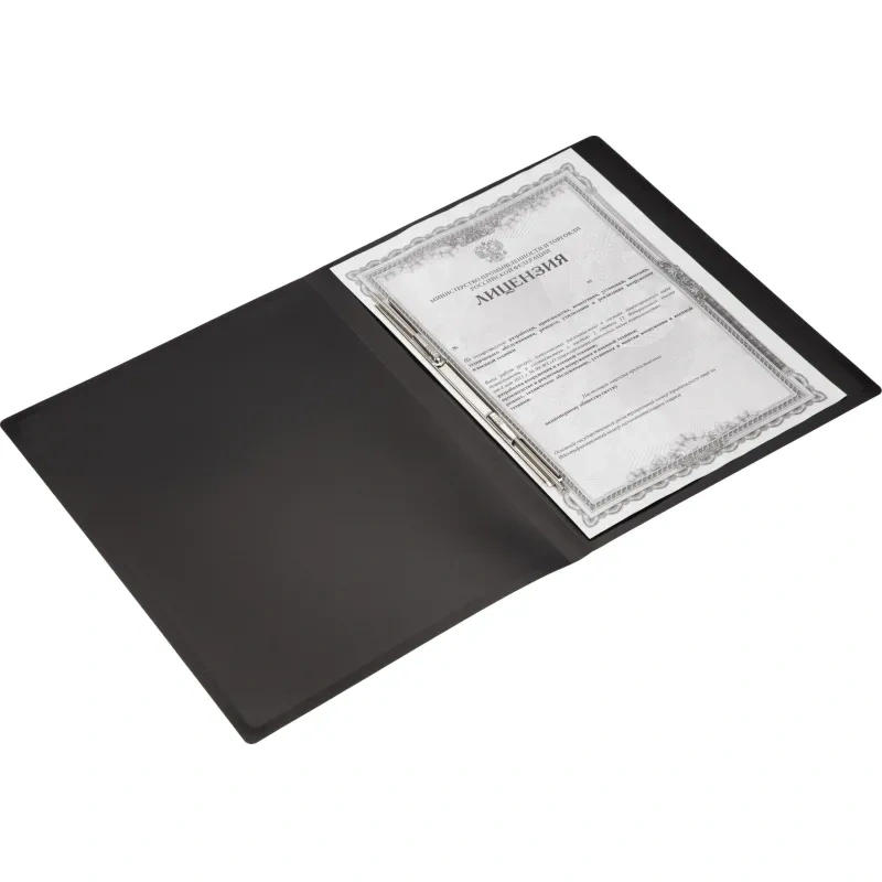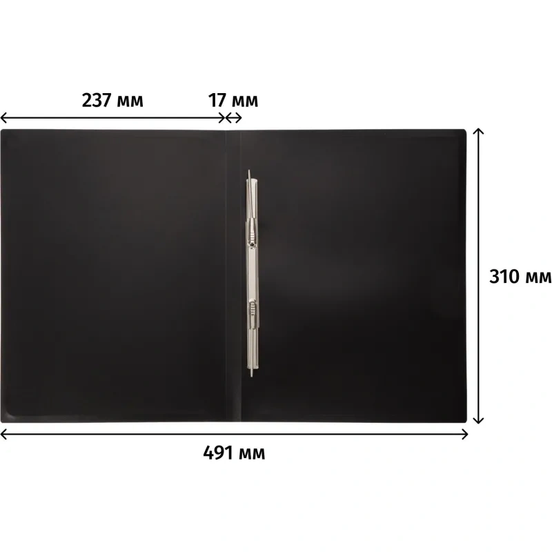 Скоросшиватель используется для хранения различного рода документации, для ведения документооборота, систематизации договоров, других важных бумаг. Папка изготовлена из непрозрачного пластика толщиной 0,5 мм. Ширина корешка - 17 мм, вместимость - 150 листов стандартной плотности. Цвет- черный 1.положите скоросшиватель на горизонтальную поверхность, откройте его; 2.большим и указательным пальцами придайте пружинам вертикальное положение; 3.снимите планку со штырей движением вверх; 4.поместите перфорированные листы внутрь папки на штырьки-пружины; 5.поверх листов разместите ранее снятую планку, прижмите ее к бумаге; 6.с помощью большого и указательного пальцев разведите штырьки-пружины в противоположные направления.