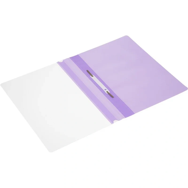 Скоросшиватель используется для хранения различного рода документации, для ведения документооборота, систематизации договоров, других важных бумаг. Форма А4. Папка изготовлена из мягкого пластика с рифлённой фактурой. Толщина пластика 110 мкм. С прозрачной верхней обложкой. Усиленный пластиковый корешок с белой полосой для размещения информации. Вместимость — 100 листов стандартной плотности. Цвет — фиолетовый. 10 штук в упаковке.