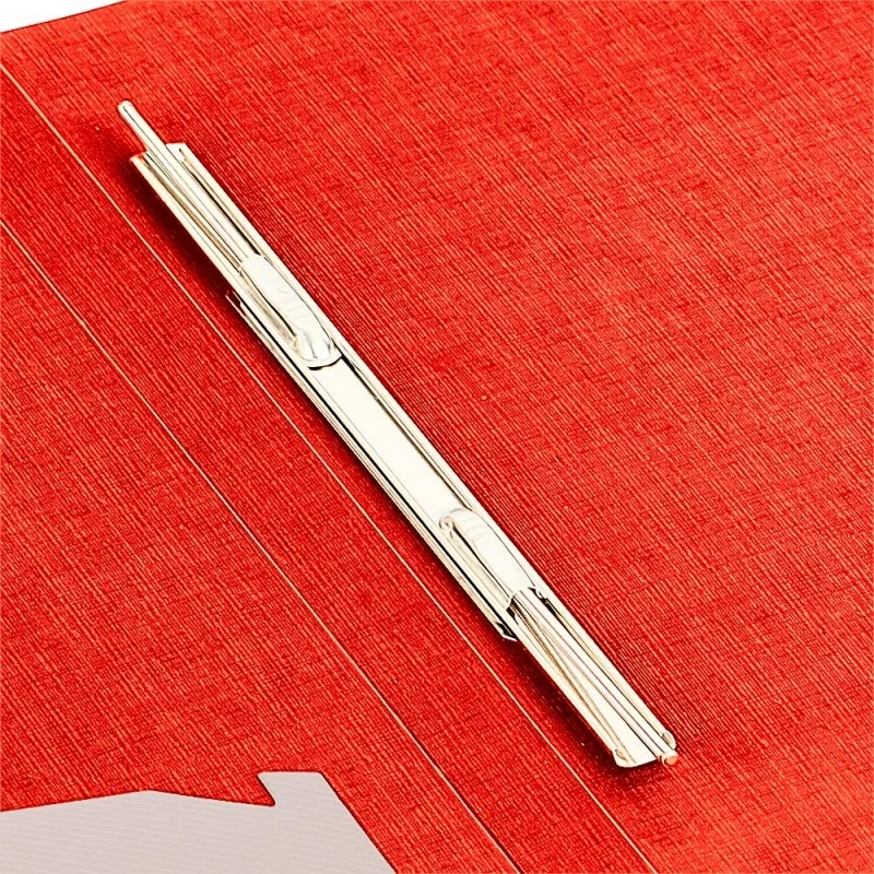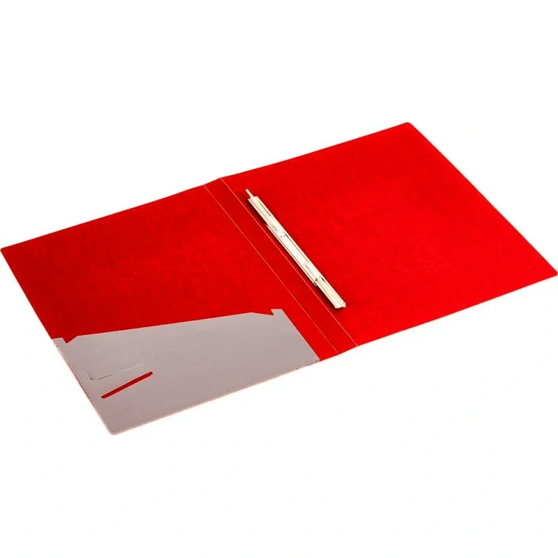 Скоросшиватель используется для хранения различного рода документаци. для ведения документооборота, систематизации договоров, других важных бумаг. Папка изготовлена из непрозрачного пластика толщиной 0,7 мм. Карман на корешке для сменной этикетки для идентификации папки. На внутренней обложке есть прозрачный карман для документов. Размеры внутреннего кармана — 310×72 мм. Ширина корешка — 17 мм, вместимость — 150 листов стандартной плотности. Цвет- красный 1.положите скоросшиватель на горизонтальную поверхность, откройте его; 2.большим и указательным пальцами придайте пружинам вертикальное положение; 3.снимите планку со штырей движением вверх; 4.поместите перфорированные листы внутрь папки на штырьки-пружины; 5.поверх листов разместите ранее снятую планку, прижмите ее к бумаге; 6.с помощью большого и указательного пальцев разведите штырьки-пружины в противоположные направления.