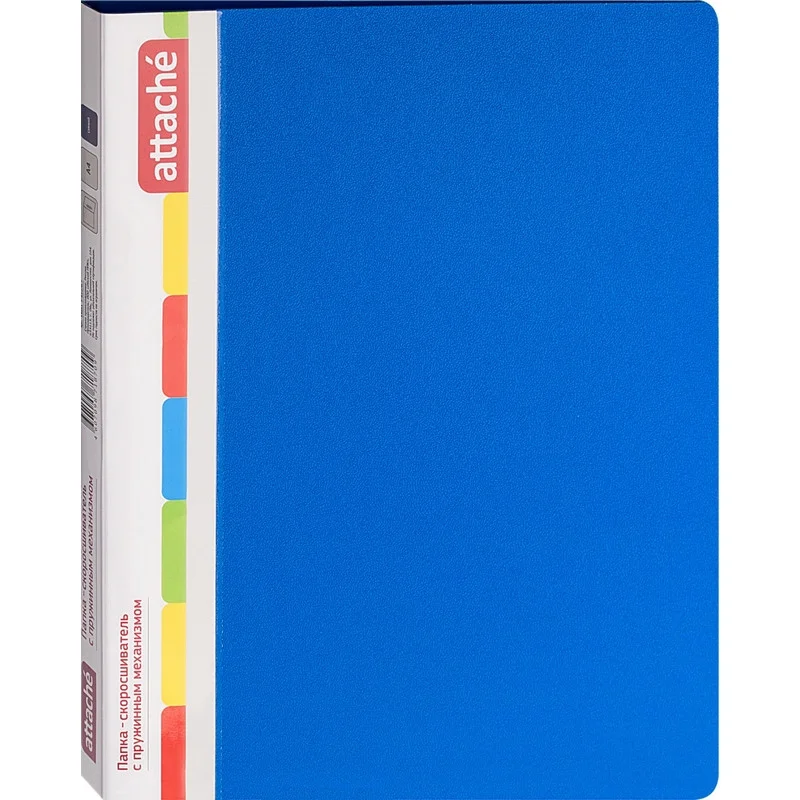 Скоросшиватель пластиковый Attache с пружинным механизмом синий, А4, до 150 листов, 0.7мм
