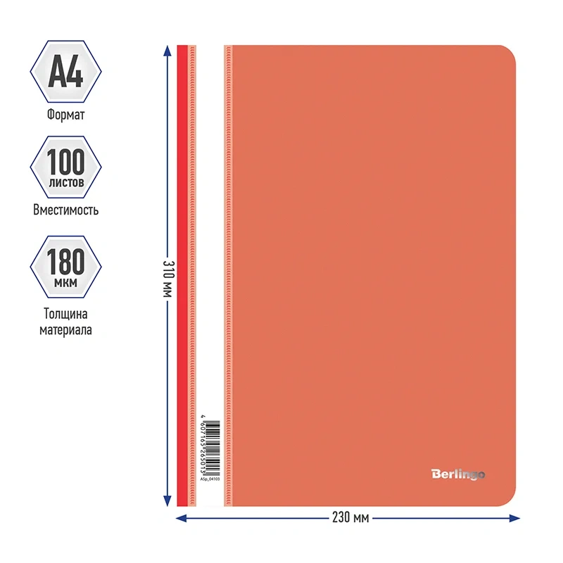 Папка-скоросшиватель с прозрачным верхним листом. Для хранения документов А4. Изготовлена из плотного пластика. Усиленный пластиковый корешок с индексной полосой для размещения информации.