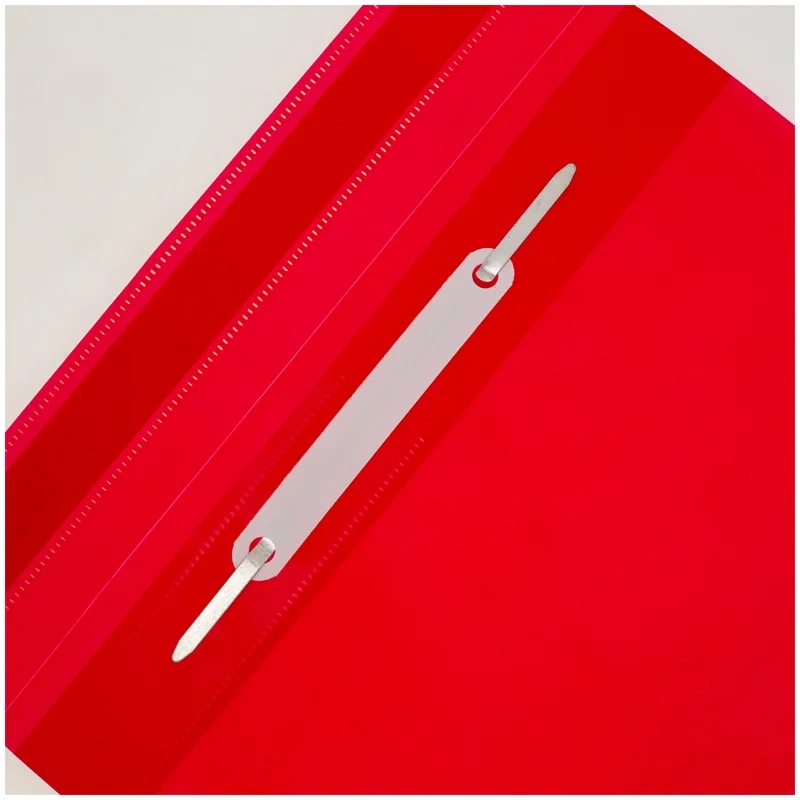 Папка-скоросшиватель с прозрачным верхним листом. Для бережного хранения перфорированных документов А5. Изготовлена из плотного пластика толщиной 180 мкм. Усиленный пластиковый корешок с индексной полосой для размещения информации. На индексной полосе размещен индивидуальный ШК.