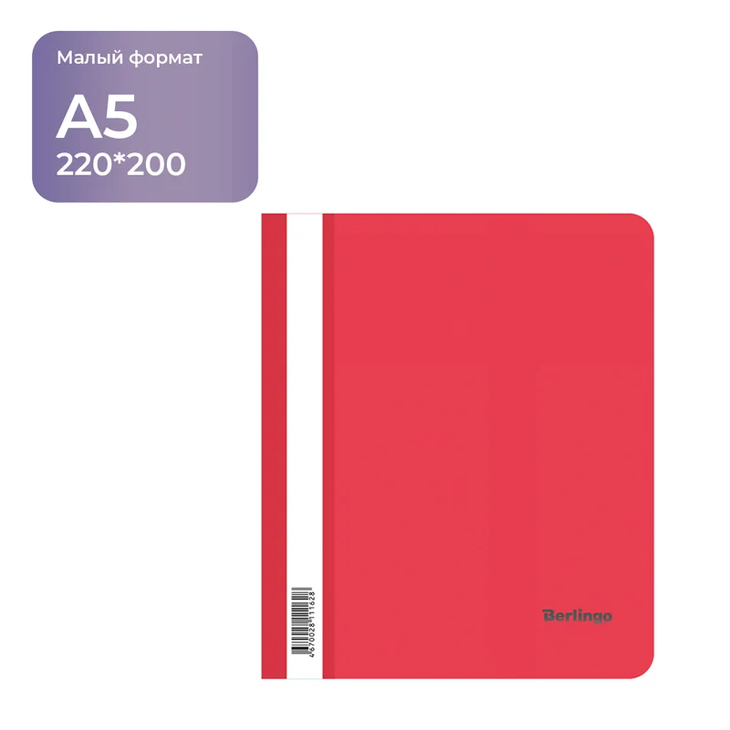 Скоросшиватель пластиковый Berlingo красный, А5, штрихкод, 5103