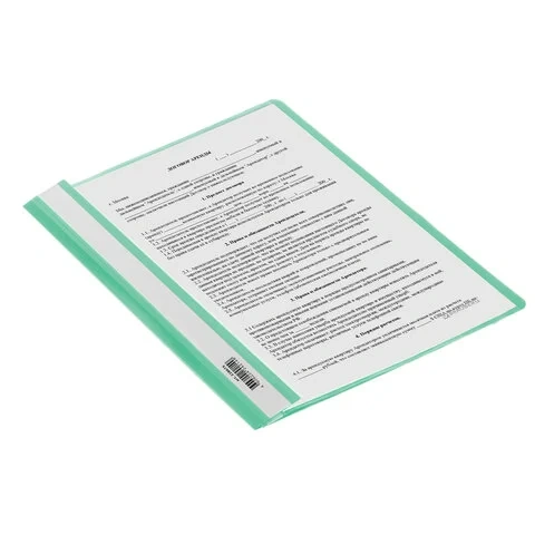 Фиксирует до 100 листов формата А4. Толщина пластика для верхнего листа - 130 мкм, для нижнего - 180 мкм. Предельно простой механизм подшивки: металлические усики и пластиковая планка для надежной фиксации документов. Скоросшиватель изготовлен из полипропилена. Снабжен прозрачным верхним листом. Для идентификации имеет сменный пластиковый корешок. Благодаря фактуре 'песок' и яркому бирюзовому цвету обложки важная папка никогда не затеряется на полке.