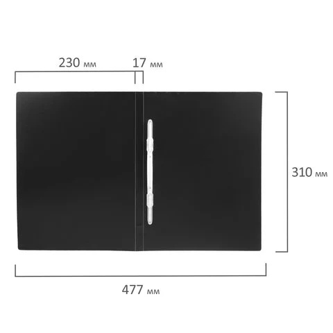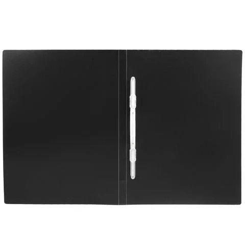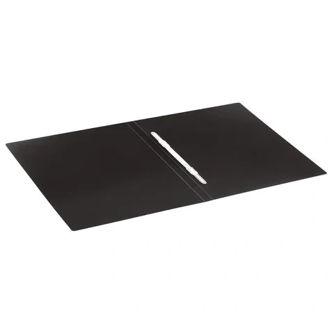 Изготовлена из высококачественного пластика черного цвета толщиной 0,5 мм с фактурой 'песок'. Обеспечивает хранение до 100 листов формата А4. Пластиковый скоросшиватель с пружинным механизмом обеспечит надежную фиксацию документов. Для идентификации имеется бумажный корешок.